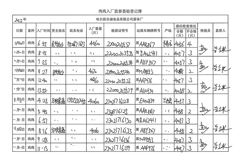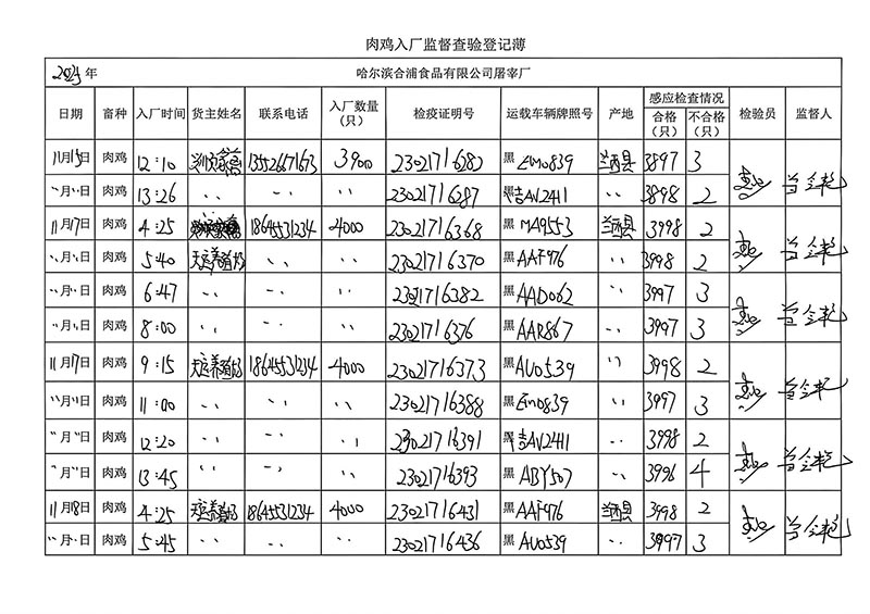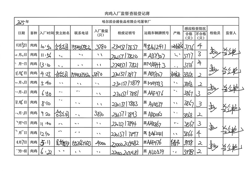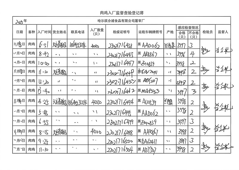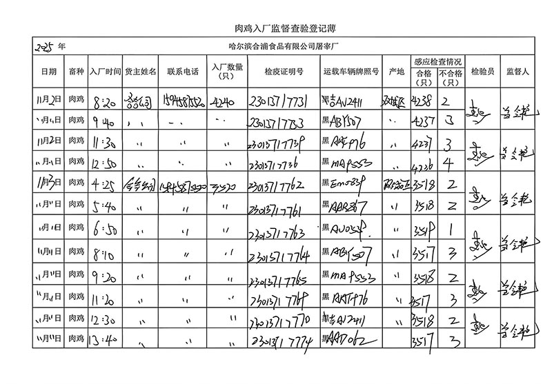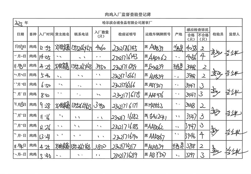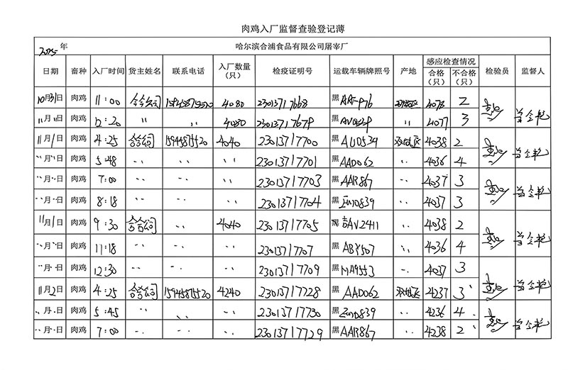 毛雞車輛進出十一月份記錄