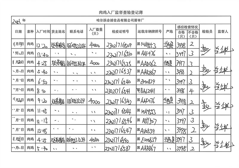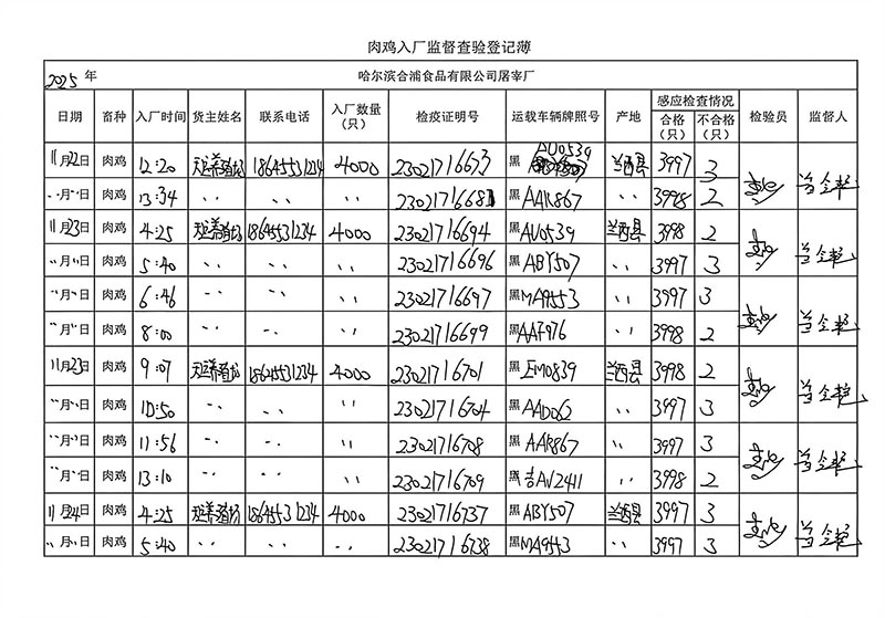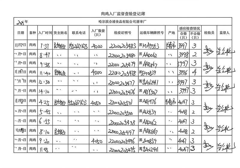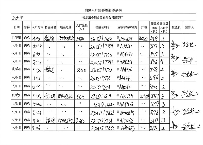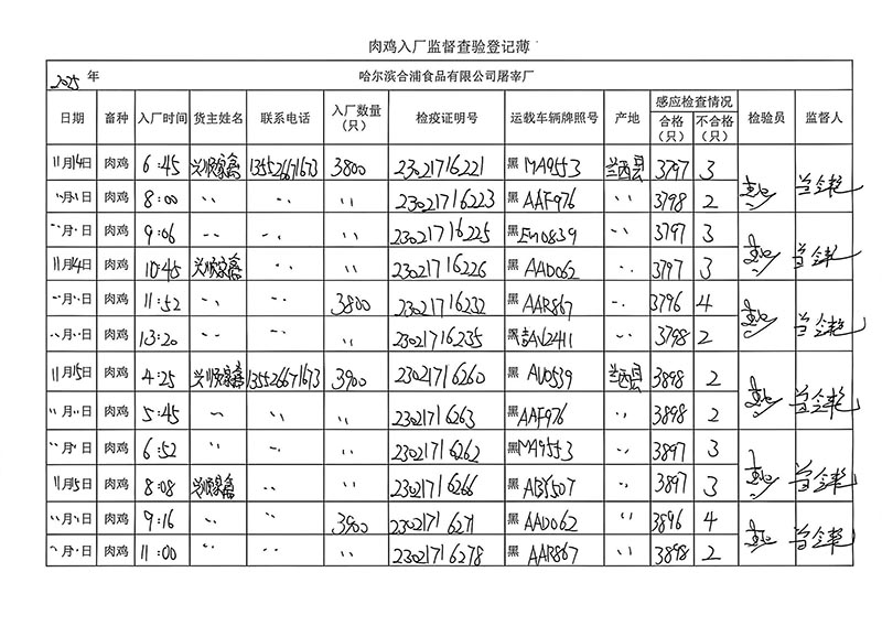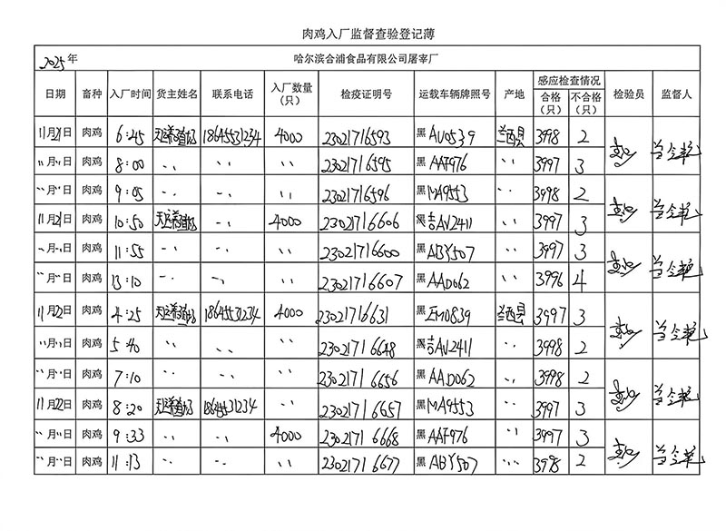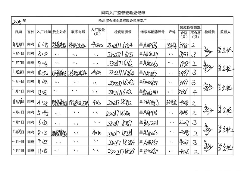 毛雞車輛進出十一月份記錄