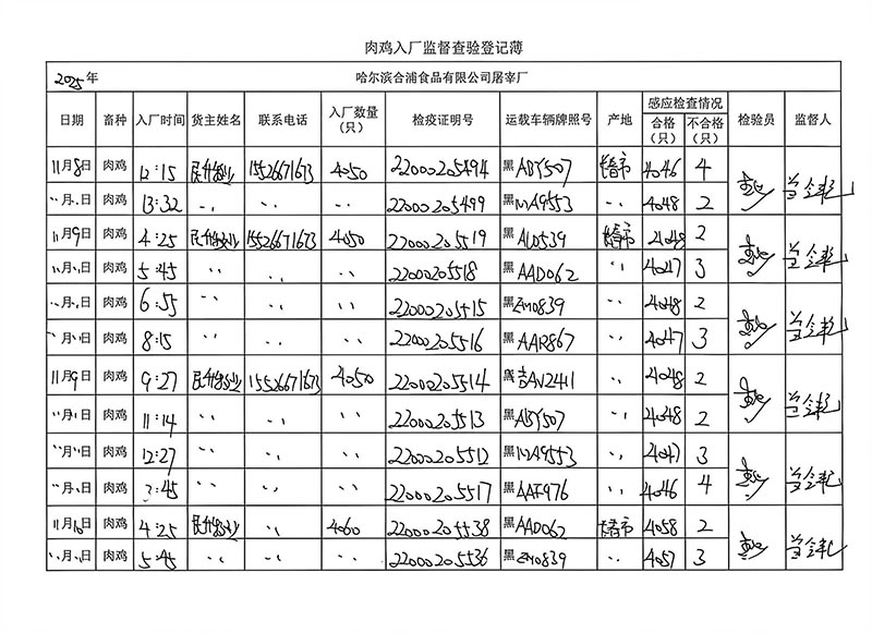 毛雞車輛進出十一月份記錄